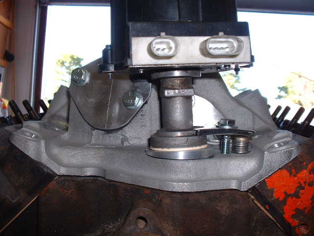 Here's a close up of my new angled distributor shim, it's still a 1/4" on the high