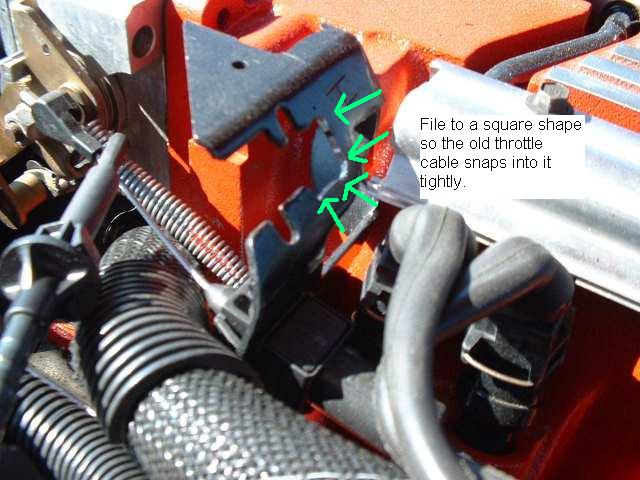 Here's some close up pictures of the throttle cable bracket . I used a bracket from a