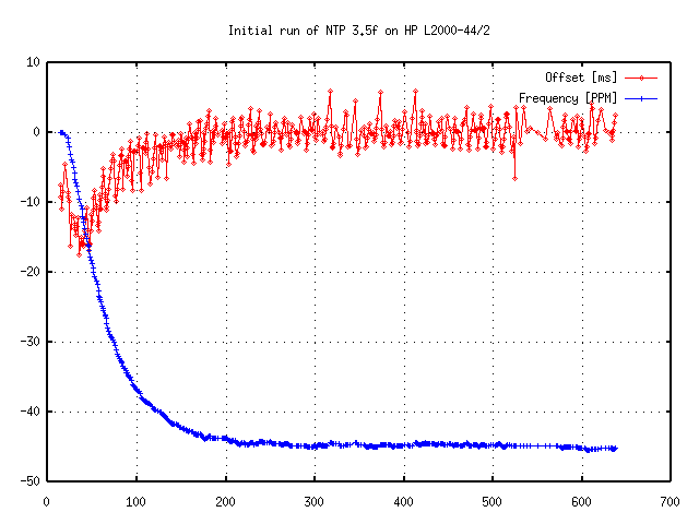 In NTP version 3 that point was hardcoded as 1024 seconds. For shorter polling intervals PLL mode was used, while for longer intervals FLL mode was used. NTP version 4 has a mixed model where PLL and FLL both contribute to the estimated correction value. However, this does not mean that the older kernel code fails; I successfully ran a standard Linux kernel with maxpoll 17, and the polling interval actually reached 36 hours.[4]