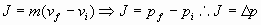 O primeiro membro da equação é a variação do momento, pf – pi; o segundo membro intitula-se impulso J da força. Assim,