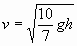 Convertendo as grandezas da dinâmica rotacional para seus equivalentes lineares, usando a inércia rotacional para uma esfera sólida e resolvendo para v, obtém-se a relação indicada. Assim sendo, a velocidade de lançamento ou escape da esfera metálica é: