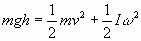 Esta relação é obtida do Princípio da Conservação de Energia, onde a energia potencial da esfera quando no topo é igual à somatória da energia cinética ao sair da rampa e a energia cinética rotacional. Assim,