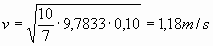 Uma vez determinado o ponto X0, a esfera de vidro foi novamente retirada. Agora, posicionou-se a esfera metálica 10 cm acima do ponto de saída da rampa de lançamento, ou seja, a altura h na Figura 1. Pode-se calcular a velocidade de saída da esfera metálica neste ponto, usando a relação: