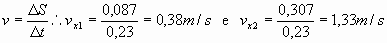 Agora as velocidades vx1 e vx2 das esferas de metal e vidro, respectivamente, podem ser calculadas.