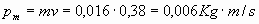O vetor quantidade de movimento inicial pi da esfera metálica é paralelo à essa reta suporte, e tem módulo conforme abaixo:
