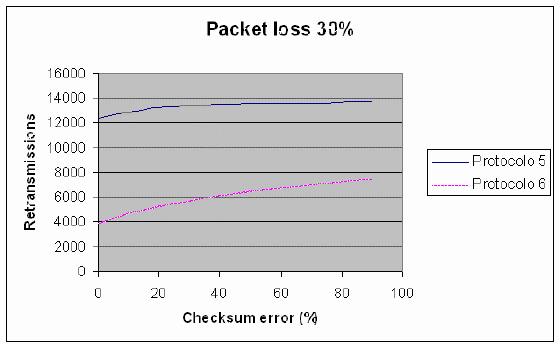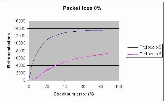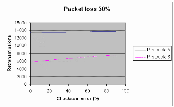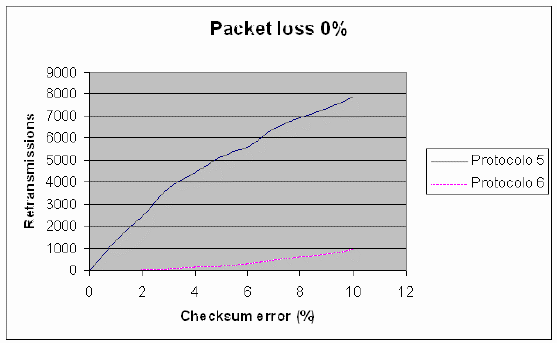 Entretanto, em termos de retransmissões devido a erros, o Protocolo 6 mostra-se sempre mais eficiente que o Protocolo 5. Isso pode significar que o Protocolo 6 não carrega o meio com retransmissões de quadros, como faz o Protocolo 5.
