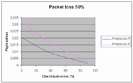 Gráficos para Packet loss 50%, com Checksum error crescente.