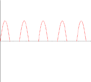 Usando-se de uma ponte de diodos, pode-se retificar também os semiciclos negativos, resultando num sinal na carga pulsante com o dobro da freqüência do sinal de entrada. Verificar as Figuras 3 e 4.