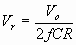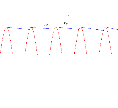 Figura 5: Meia-onda retificada com capacitor de filtro. vo é a tensão na carga, Vr é a tensão de ripple.